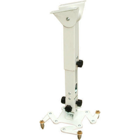 Professional universal telescopic (40-57 cm), ceiling mount for video projector. Adjustable mounting flange angle +/-90°. Adjustable fine tuning of the axes by four knobs, without any tool (Patent n. 1359423). Cable and connectors can run inside the tube. Ehnanced thickness of the structure suitable also for bigger video projectors. Optional extensions.