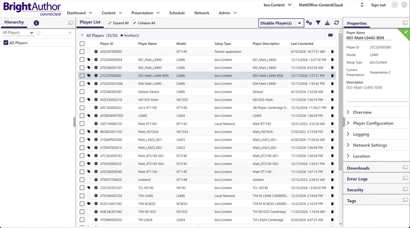 • Proactive Management: Deploy BrightSign OS updates remotely to maintain security and reliability.