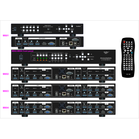 A. Structuur: Elke M800Ex bestaat uit 1-4 modules. Elke module bestuurt één projector en kan worden gecascadeerd voor onbeperkt aantal projectoren.